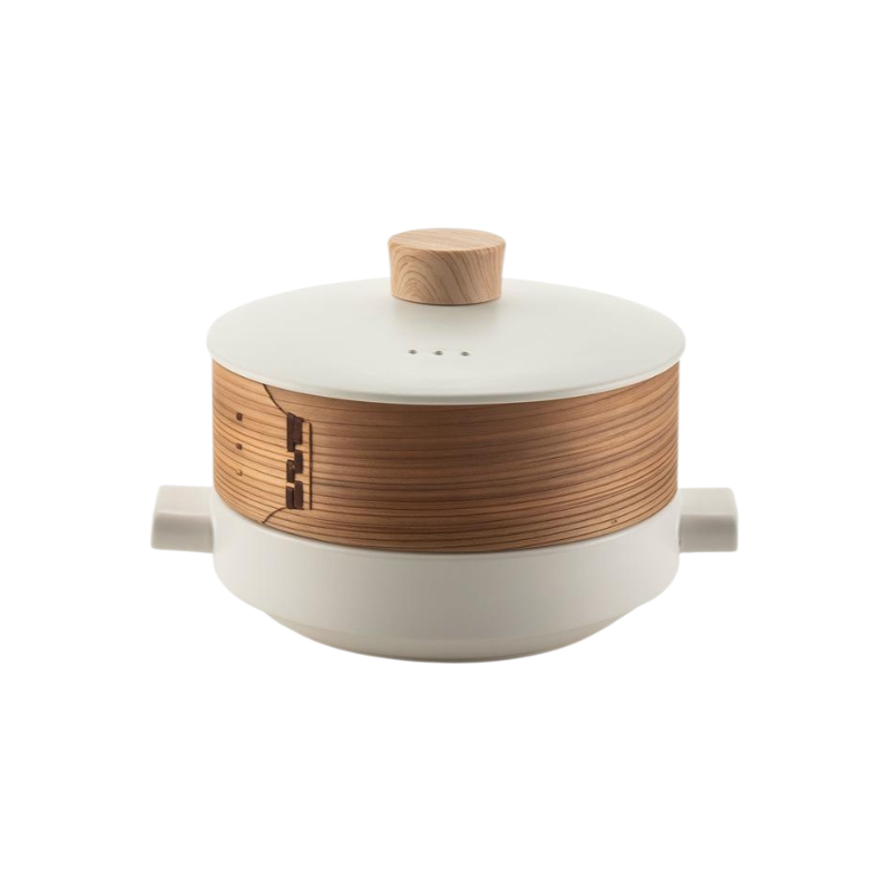 หม้อเซรามิกสองชั้นพร้อมตะกร้านึ่ง